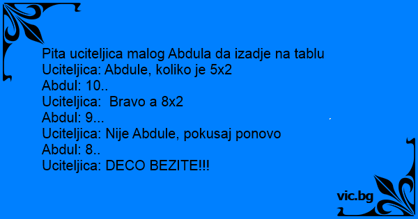 Uciteljica: Abdule, koliko je 5x2