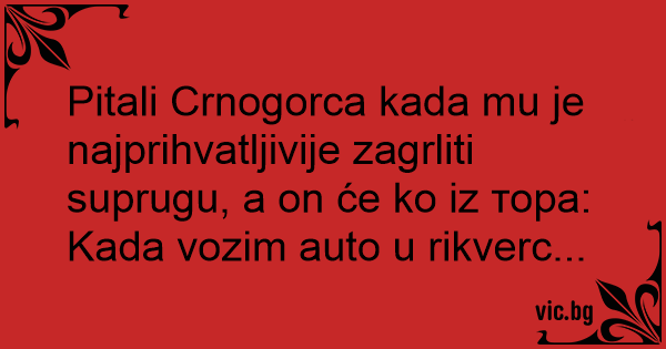 Pitali Crnogorca kada mu je najprihvatljivije zagrliti suprugu, a on će ko iz тора: Kada vozim auto u rikverc...