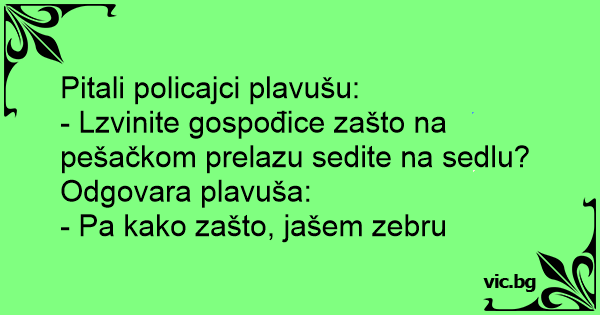 - Lzvinite gospođice zašto na pešačkom prelazu sedite na sedlu?