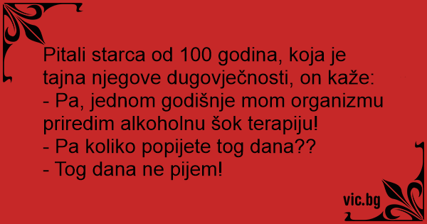 Pitali starca od 100 godina, koja je tajna njegove dugovječnosti, on kaže:
