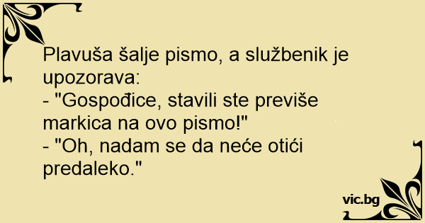 - "Gospođice, stavili ste previše markica na ovo pismo!"