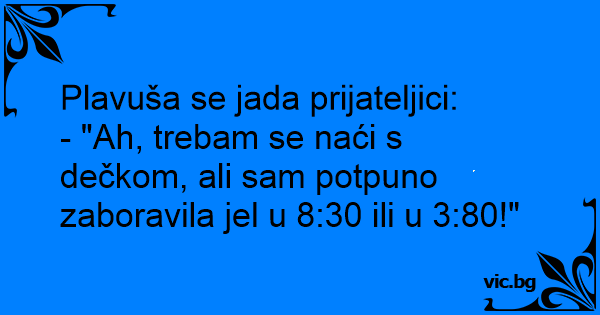 - "Ah, trebam se naći s dečkom, ali sam potpuno zaboravila jel u 8:30 ili u 3:80!"