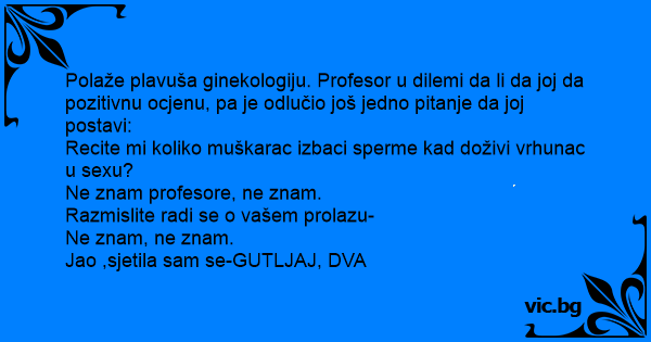 Polaže plavuša ginekologiju. Profesor u dilemi da li da joj da pozitivnu ocjenu, pa je odlučio još jedno pitanje da joj postavi: