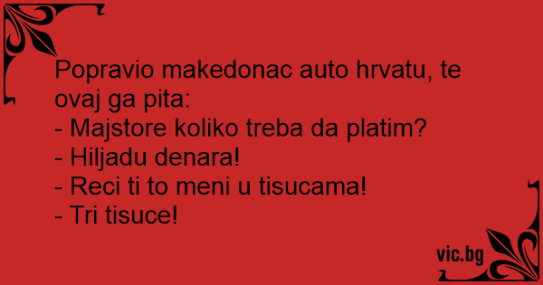 Popravio makedonac auto hrvatu, te ovaj ga pita: