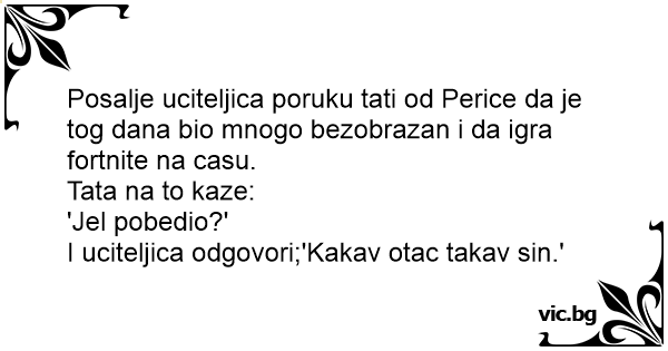 Posalje uciteljica poruku tati od Perice da je tog dana bio mnogo bezobrazan i da igra fortnite na casu.