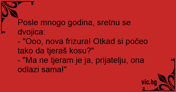 - "Ooo, nova frizura! Otkad si počeo tako da tjeraš kosu?"