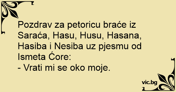 Pozdrav za petoricu braće iz Saraća, Hasu, Husu, Hasana, Hasiba i Nesiba uz pjesmu od Ismeta Ćore: