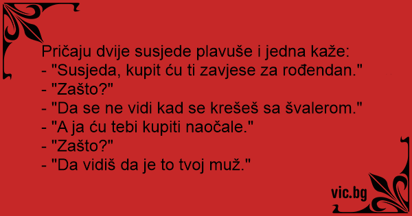 Pričaju dvije susjede plavuše i jedna kaže: