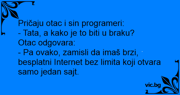 - Ce înseamnă căsătoria? - Să ai trafic nelimitat la internet, dar să se deschidă doar un singur site.