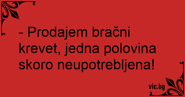 - Prodajem bračni krevet, jedna polovina skoro neupotrebljena!
