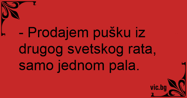 - Prodajem pušku iz drugog svetskog rata, samo jednom pala.