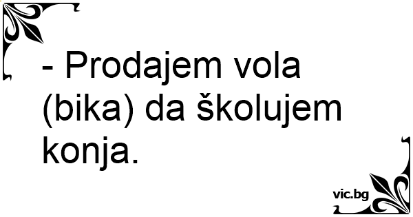 - Prodajem vola (bika) da školujem konja.