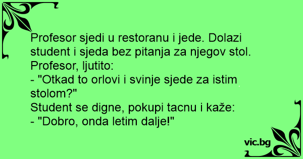 Profesor sjedi u restoranu i jede. Dolazi student i sjeda bez pitanja za njegov stol. Profesor, ljutito: