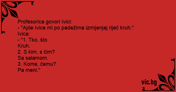 - "Ajde Ivice mi po padežima izmijenjaj riječ kruh."