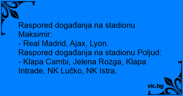 Raspored događanja na stadionu Maksimir:
