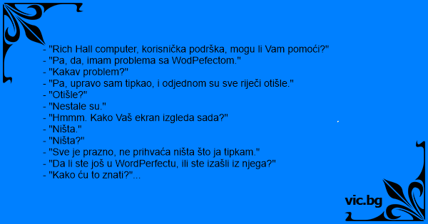 - "Rich Hall computer, korisnička podrška, mogu li Vam pomoći?"