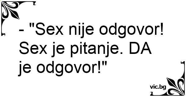 - "Sеx nije odgovor! Sеx je pitanje. DA je odgovor!"