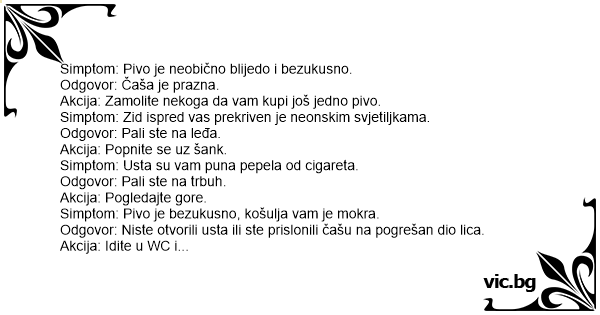 Simptom: Pivo je bezukusno, košulja vam je mokra.