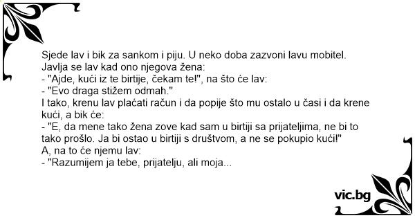I tako, krenu lav plaćati račun i da popije što mu ostalo u časi i da krene kući, a bik će: