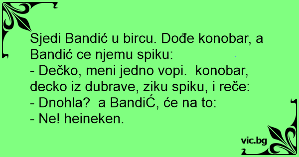 - Dečko, meni jedno vopi. konobar, decko iz dubrave, ziku spiku, i reče: