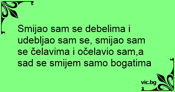 Smijao sam se debelima i udebljao sam se, smijao sam se čelavima i očelavio sam,a sad se smijem samo bogatima