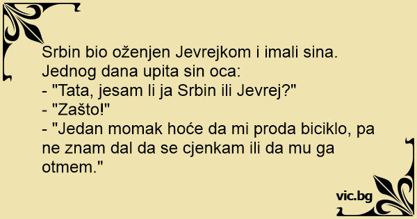 Srbin bio oženjen Jevrejkom i imali sina. Jednog dana upita sin oca: