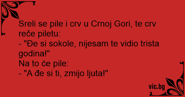 Sreli se pile i crv u Crnoj Gori, te crv reče piletu: