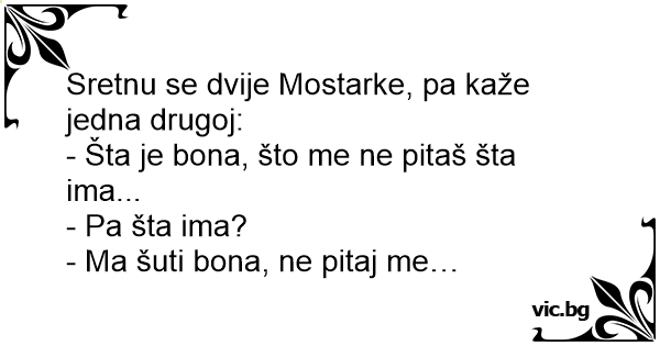 Sretnu se dvije Mostarke, pa kaže jedna drugoj: