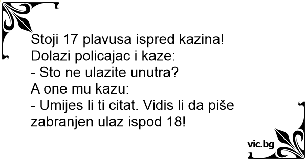 - Umijes li ti citat. Vidis li da piše zabranjen ulaz ispod 18!