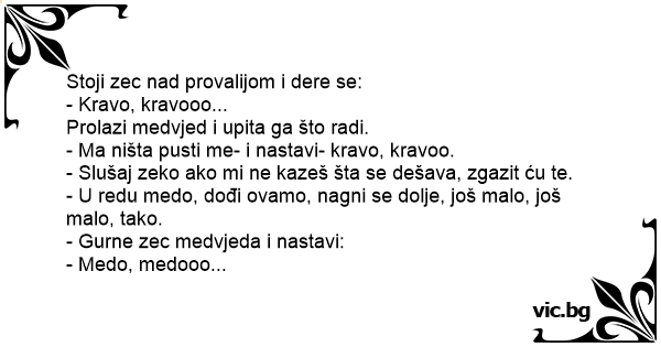 - Slušaj zeko ako mi ne kazeš šta se dešava, zgazit ću te.
