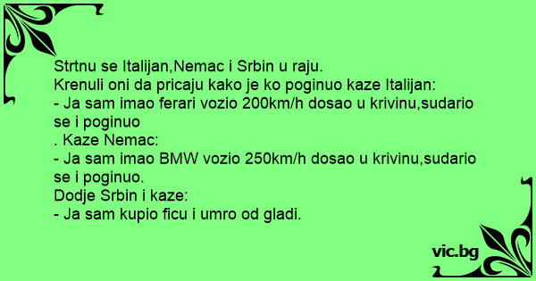 Strtnu se Italijan,Nemac i Srbin u raju.