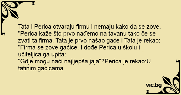"Firma se zove gaćice. I dođe Perica u školu i učiteljica ga upita: