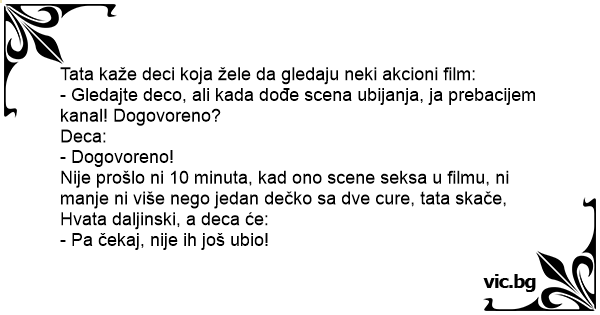 Tata kaže deci koja žele da gledaju neki akcioni film: