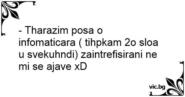 - Tharazim posa o infomaticara ( tihpkam 2o sloa u svekuhndi) zaintrefisirani ne mi se ajave xD