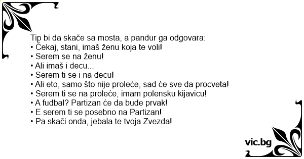 Tip bi da skače sa mosta, a pandur ga odgovara: