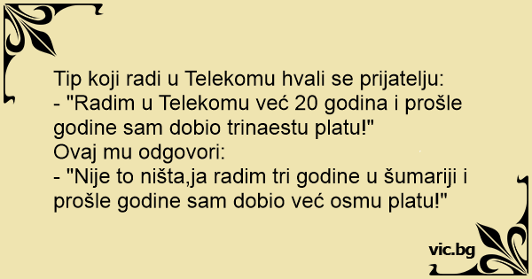 - "Nije to ništa,ja radim tri godine u šumariji i prošle godine sam dobio već osmu platu!"