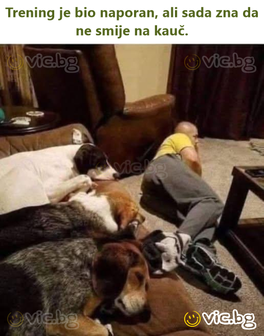 Trénink byl únavný, ale teď už ví, že nesmí na gauč.