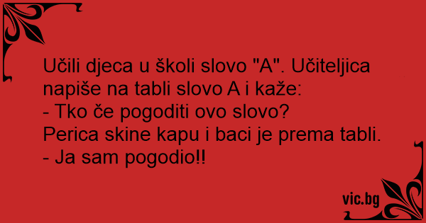 Učili djeca u školi slovo "A". Učiteljica napiše na tabli slovo A i kaže: