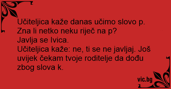Učiteljica kaže: ne, ti se ne javljaj. Još uvijek čekam tvoje roditelje da dođu zbog slova k.