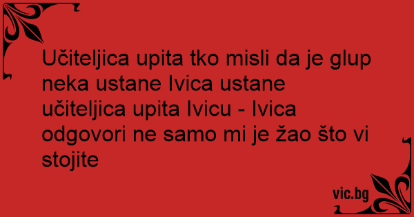 Učiteljica upita tko misli da je glup neka ustane Ivica ustane učiteljica upita Ivicu - Ivica odgovori ne samo mi je žao što vi stojite