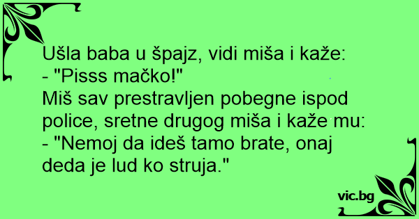 Ušla baba u špajz, vidi miša i kaže:
