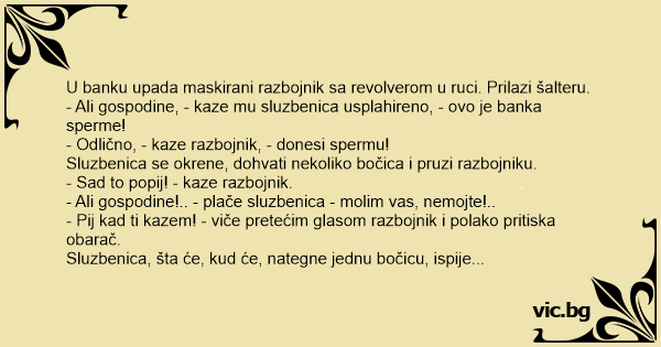 - Odlično, - kaze razbojnik, - donesi spermu!