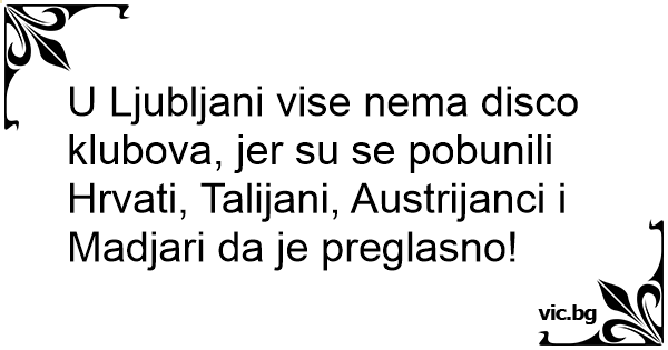 U Ljubljani vise nema disco klubova, jer su se pobunili Hrvati, Talijani, Austrijanci i Madjari da je preglasno!