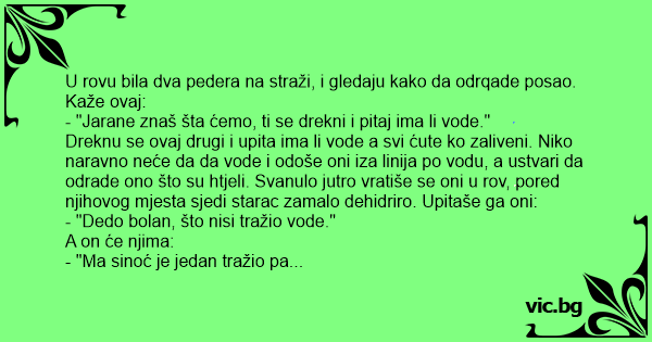 - "Jarane znaš šta ćemo, ti se drekni i pitaj ima li vode."