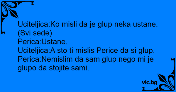 Uciteljica:A sto ti mislis Perice da si glup.