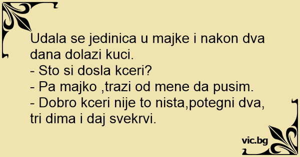 - Dobro kceri nije to nista,potegni dva, tri dima i daj svekrvi.
