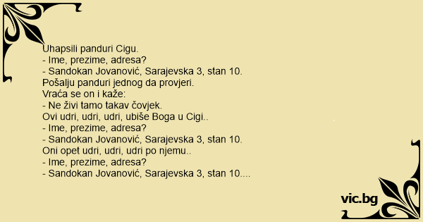 Vraća se taj pandur i kaže: