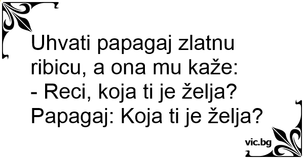 Uhvati papagaj zlatnu ribicu, a ona mu kaže: