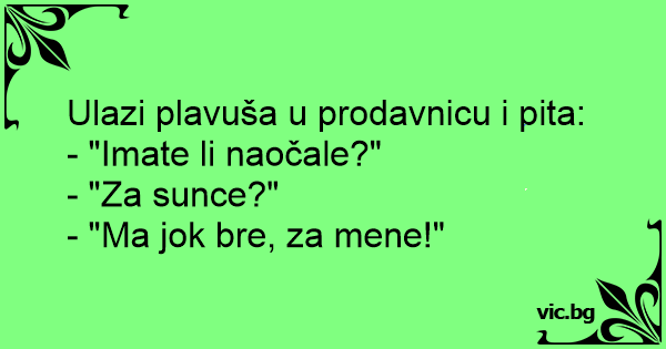 Ulazi plavuša u prodavnicu i pita: