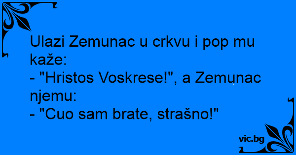 Ulazi Zemunac u crkvu i pop mu kaže: